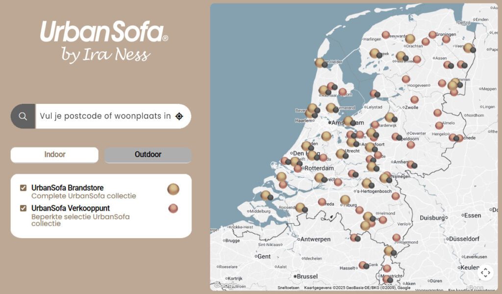 Keuze gemaakt? Dan wil je de mooie banken, fauteuils, eetkamerstoelen natuurlijk ook wel even in het echt zien! Je vindt UrbanSofa brandstores door geheel Nederland dus ook bij jou in de buurt.